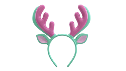 Reindeer antler headband with illuminated fairy lights, festive holiday costume accessory on transparent background