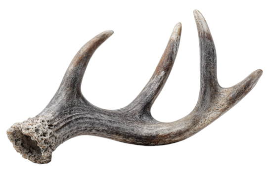 White-tailed deer antler with multiple tines and a rough, textured surface