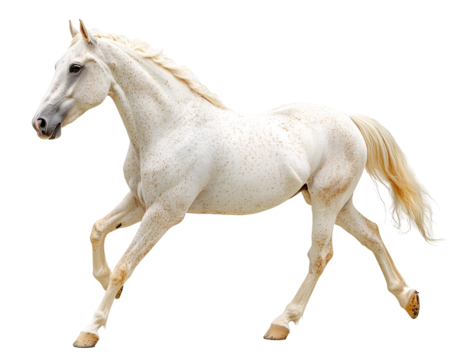 a white horse with brown spots