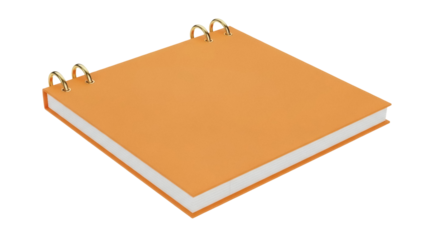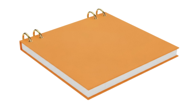 Isolated orange ring binder with blank cover is seen at an angle on a neutral surface
