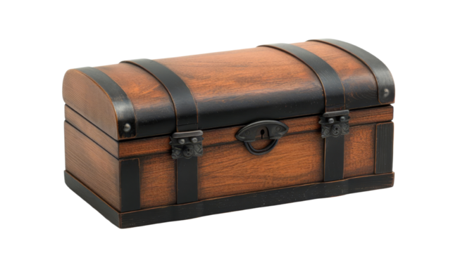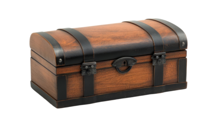 A vintage wooden treasure chest with metal accents, perfect for storage or decorative purposes in any setting.