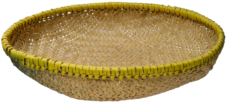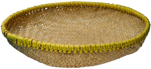Traditional Sundanese Indonesian Woven Bamboo Sieve, Ayakan, with Yellow Rim, Wengku Cord in Transparent Background