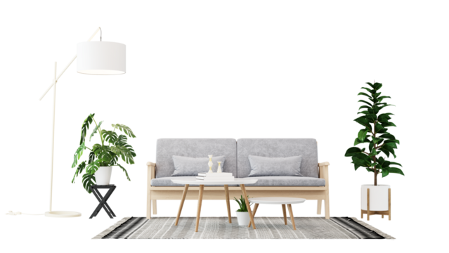 Interior furniture set 3D render. Living room house floor template background mockup design , isolated on transparent background