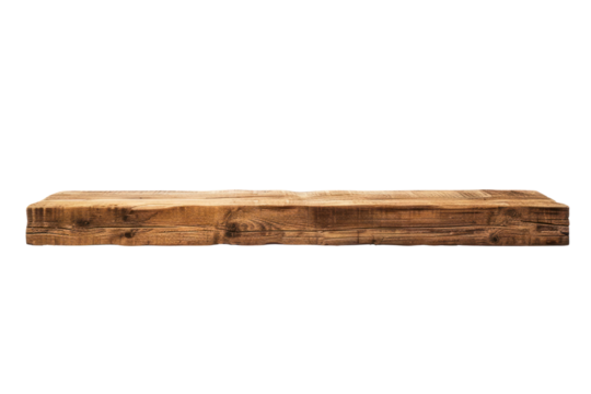 A minimalist shelf made from reclaimed wood, emphasizing the clean lines and understated elegance of the sustainable material, isolated on a white background