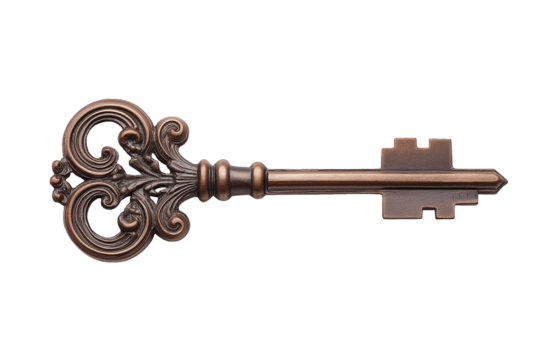 High-resolution house key isolated on clean white transparent PNG background, ideal for real estate, security, property, mortgage, rental, and home ownership branding and design projects.