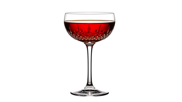 A vibrant red cocktail in an elegant crystal glass against a dark background isolated on transparent background