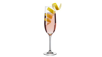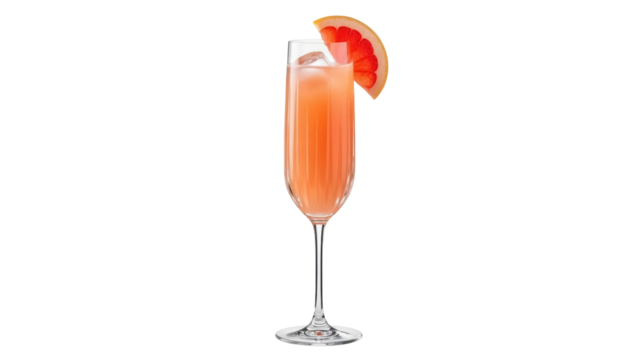 Isolated pink cocktail in flute glass with grapefruit garnish, elegant drink celebration