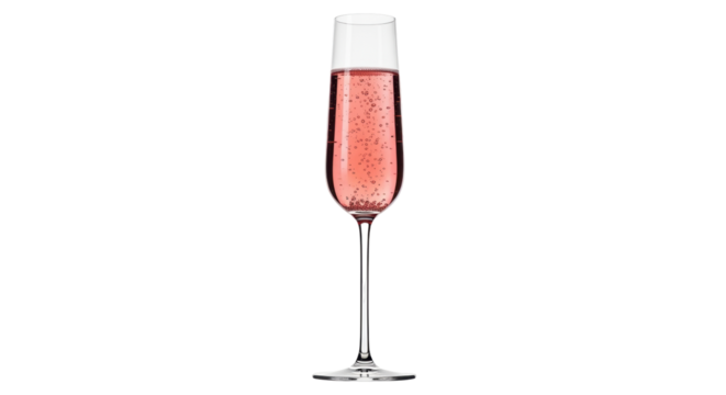 Isolated tall glass flute of rose colored champagne, perfect for celebrations and events