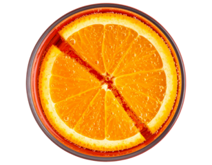 Top-Down View of Aperol Spritz with Floating Orange Slices and Bubbles, Summer Cocktail Aesthetic, Isolated on Transparent Background