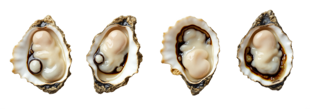 Fresh oysters isolated on transparent background. Raw seafood delicacy for menus, recipes, gourmet, and coastal themes. Clean, inviting, high-res.