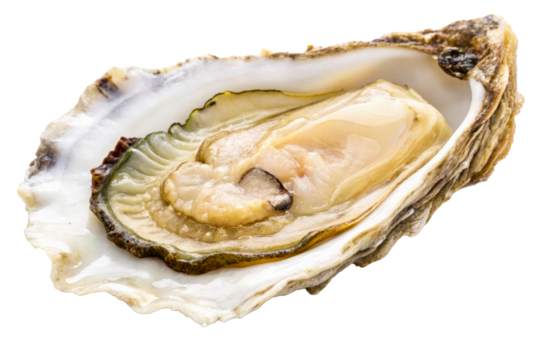 Fresh oyster open shell seafood delicacy isolated on transparent background