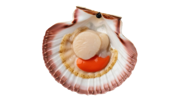 Isolated scallop with roe inside the shell close-up seafood fresh delicious tasty shellfish