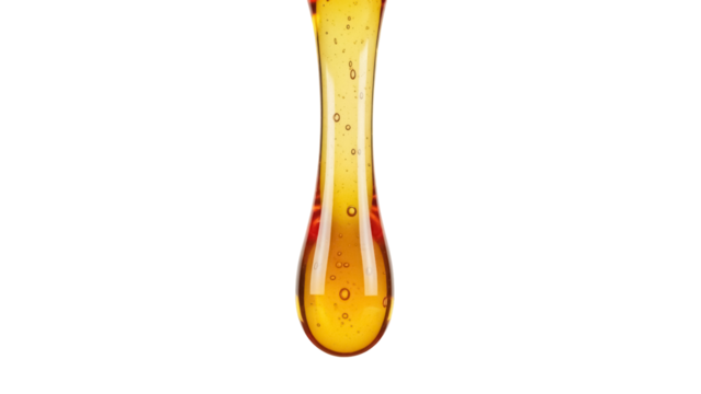 Golden honey drop isolated PNG on transparent background, sweet natural syrup dripping for food and healthy lifestyle concepts