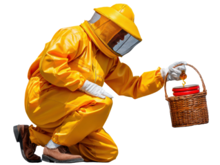 Bee keeping activity apiary of beekeeper outdoor environment hive management techniques isolated on transparent background