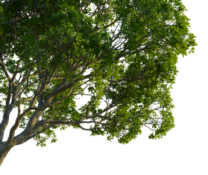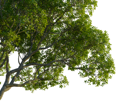 Rhizophora apiculata tree, corner view, cutout, 4k PNG, isolate, Lush green tree branch with leaves on transparent background