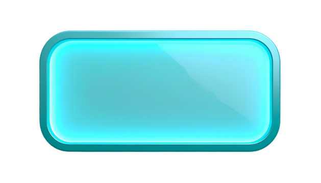 A luminous, rectangular graphic element with rounded corners and a glossy, transparent surface. Edges glow a soft turquoise