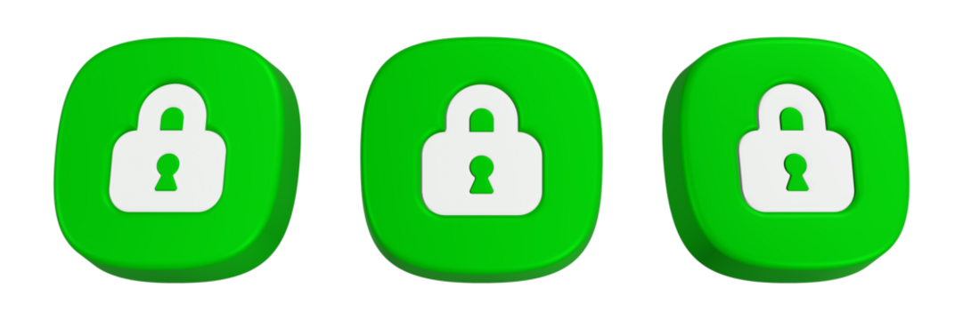 padlock 3d rendering icon green button