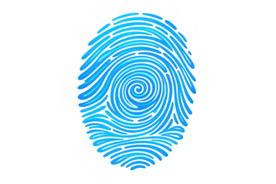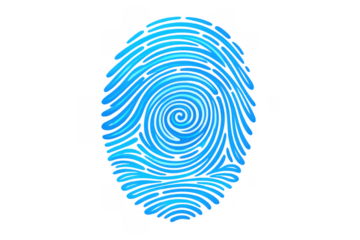 Glowing blue fingerprint graphic for biometric identification, digital security, privacy, and data protection