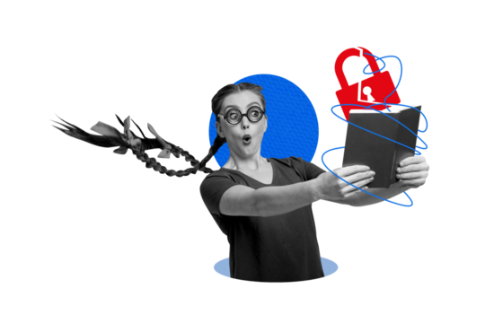 Confident woman presenting tablet on transparent background