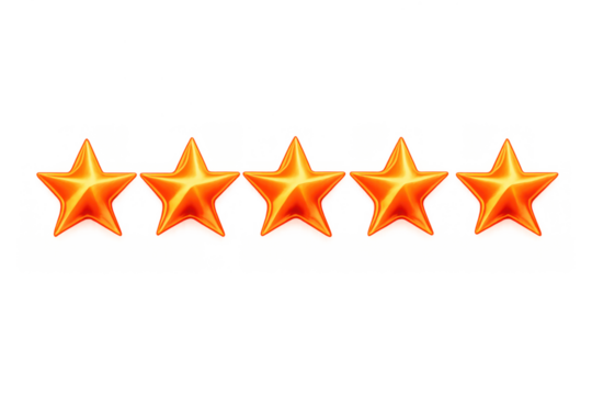 Five shiny orange-golden stars forming a rating scale, symbolizing customer satisfaction, service excellence, and premium product reviews