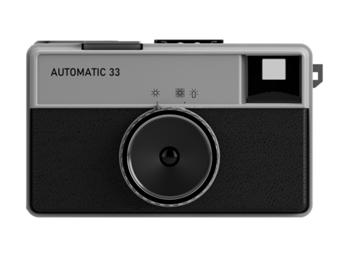 appareil photo argentique vue de dessus, boitier nu, sur fond transparent