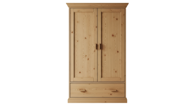 Isolated armoire storage for clothing organization, natural pine wooden wardrobe cabinet