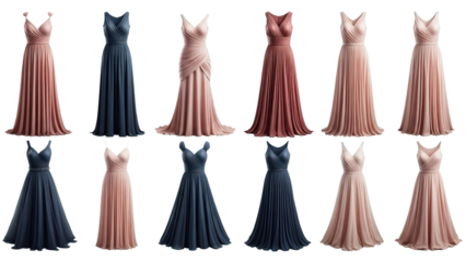 Collection of Elegant Evening Gowns Isolated on Transparent Background