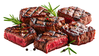 Perfectly grilled, juicy cuts of meat garnished with fresh herbs