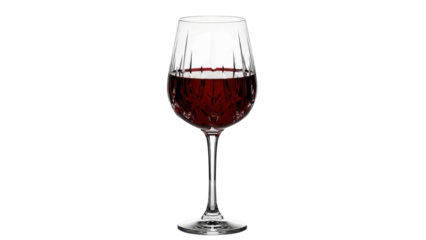 Isolated Elegant crystal glass filled with red wine on plain surface for elegant drinkware