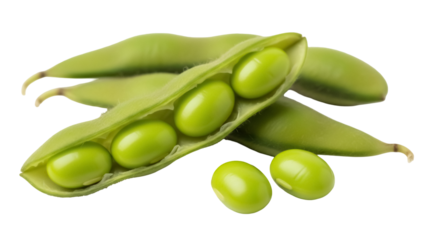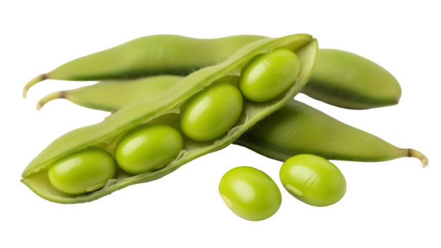 Fresh green edamame pods isolated PNG, healthy soybean snack with beans on transparent background for vegetarian diet and Asian cuisine