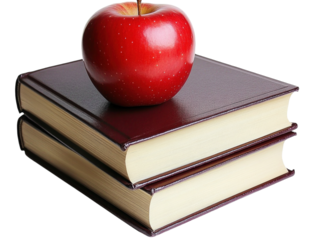 Red apple on books with transparent background for school design