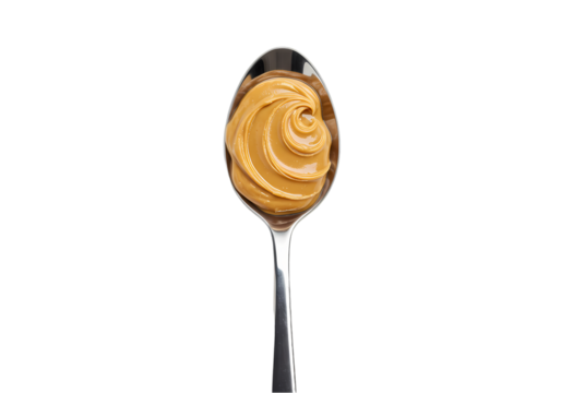A macro, photorealistic shot of a crisp apple slice with red skin and white flesh, topped with creamy peanut butter, on a clean transparent background, concept of fresh and healthy eating