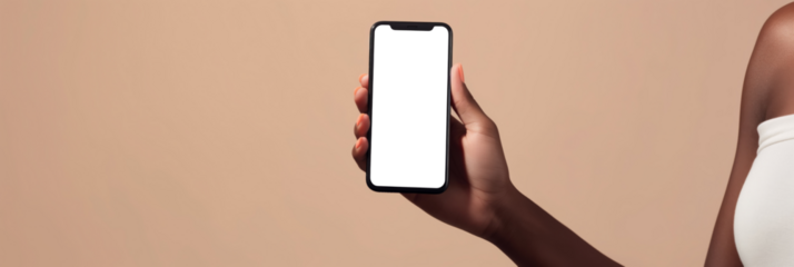 Photo of female hands with smartphone. Mock-up. Isolated screen. PNG