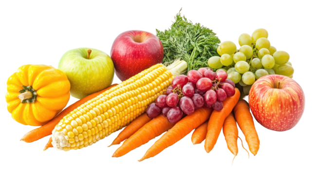Fresh fruit assortment including apples bananas and an orange isolated on transparent background