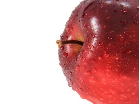Fresh red apple with water droplets isolated on transparent background, a symbol of health, nutrition, and the crispness of autumn