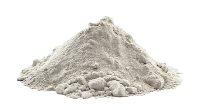 Small pile of white powder on flat surface, possibly cement or gypsum. Powder scattered in random pattern, densely packed areas. transparent background contrasts with powder, making it focal point.