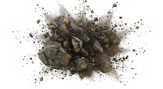 Explosion of Rock Fragments Bursting Debris Abstract Transparent Background