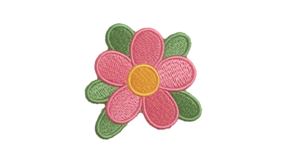 Pink rose embroidery patch isolated PNG on transparent background, floral design element for fashion and decorative arts
