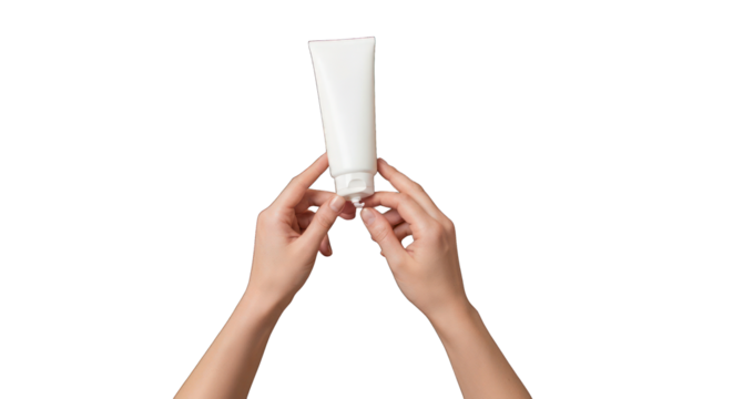 Hand Applying Lotion from Tube for Skin Care Routine Isolated on transparent background