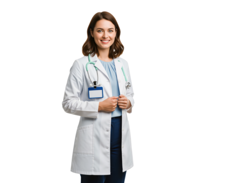 Transparent background woman holding silver wall clock