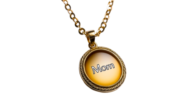 Gold locket necklace with Mom on a clear background