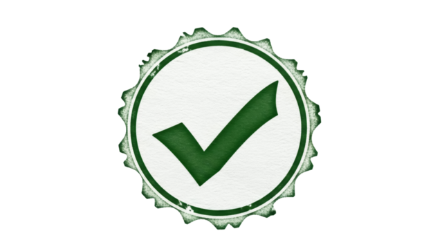 Green check mark symbol representing approval, confirmation, success, and validation on a transparent background