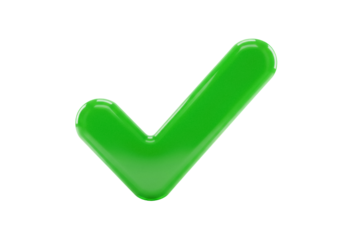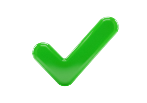 Green check mark icon symbolizing success and validation on transparent background, sign of approval and completion