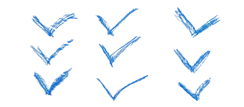 Hand drawn check marks made with crayon on paper. Raster photo illustration with a rough manual style, ideal for education themes, approval concepts, and positive feedback visuals.