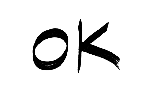 Black marker or pencil Ok word mark, vector hand drawn approved lettering