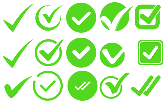 Green check mark PNG isolated on transparent background, symbol of approval and success for graphic design
