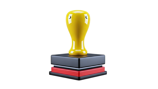 Rubber stamp applying red approved mark with wooden handle, representing approval, quality, and acceptance on transparent background