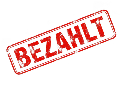 A black and white circular stamp with the word paid prominently displayed across a diagonal banner isolated on transparent background