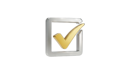 Gleaming golden checkmark on black background, 3D style, representing completion or success