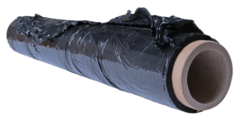 Black foil wrapped around a paper roll for packaging items. Isolated background.